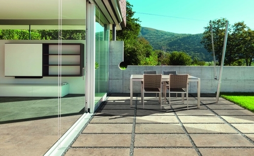 Het gamma oogt rustig en klassiek met mooie imitaties van leisteen, kwartsiet en blauwe hardsteen.